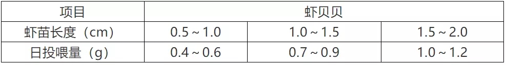 3、本(ben)表投(tou)喂量根據天氣(qi)、水溫、水質(zhi)、蝦苗健康狀況及(ji)攝食情況來調整。